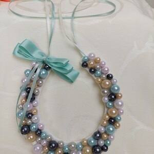 A beautifully beaded traditional bridal horseshoe from our smaller pattern measuring 5" (13 cm) x 5.5" (14 cm). Loaded with white and pale pink beads and a white and pink satin bow this vintage styled horseshoe charm has a modern wedding feel. The satin ribbon ties to attach to the bride's bouquet.